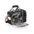 The Malibu Cooler Picnic Basket is the perfect complement to your fabulous Malibu beach life. Take this portable soft cooler with picnic set for 2 along on your next outdoor adventure, enjoying all the practical benefits of a conventional picnic basket with a sleek, modern flair. Blending high portability, rugged design, and modern style with its polyester microfiber construction and insulated cooler section with deluxe picnic basket for two. A separate insulated, two-bottle beverage section has a padded divider and peek-through closures for tall bottles - whether you're drinking beer or wine on this hike, you'll be feeling fine. This 12 can beverage capacity picnic cooler has a water-resistant liner for easy cleaning and the front section securely holds plates, tumblers, stainless steel silverware and a waiter-style corkscrew, a hardwood cutting board and cheese knife, and 100% cotton napkins.