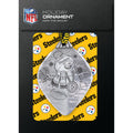 Celebrate your love for the Pittsburgh Steelers with this charming aluminum Superfan Snowman Ornament. Hand-hammered and expertly crafted, this snowman dons a logo tossel cap and an oversized superfan chain featuring the iconic Steelers logo. A delightful addition to your holiday décor or gift for a fellow fan, this ornament is a must-have for any dedicated Steelers enthusiast looking to showcase their team spirit during the festive season.