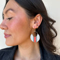 Made from premium Italian leather- these lightweight earrings are hand-embossed in Kansas City. Available in 14k gold-filled ear wire or rhodium-plated sterling silver ear wire.