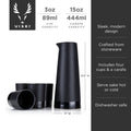 • Capacity: 3 oz. tumblers, 15 oz. carafe