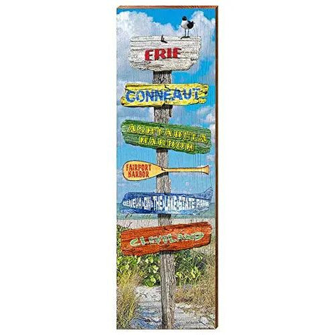 Erie Ohio Beach Directional Home Decor Art Print on Real Wood