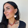 Elevate your gameday look with our White Ohio State University Buckeyes Lover leather earrings - the perfect accessory for passionate fans, proud alumni, and stylish students. These officially licensed earrings are crafted and hand-embossed in Kansas City from premium Italian leather for a standout look.